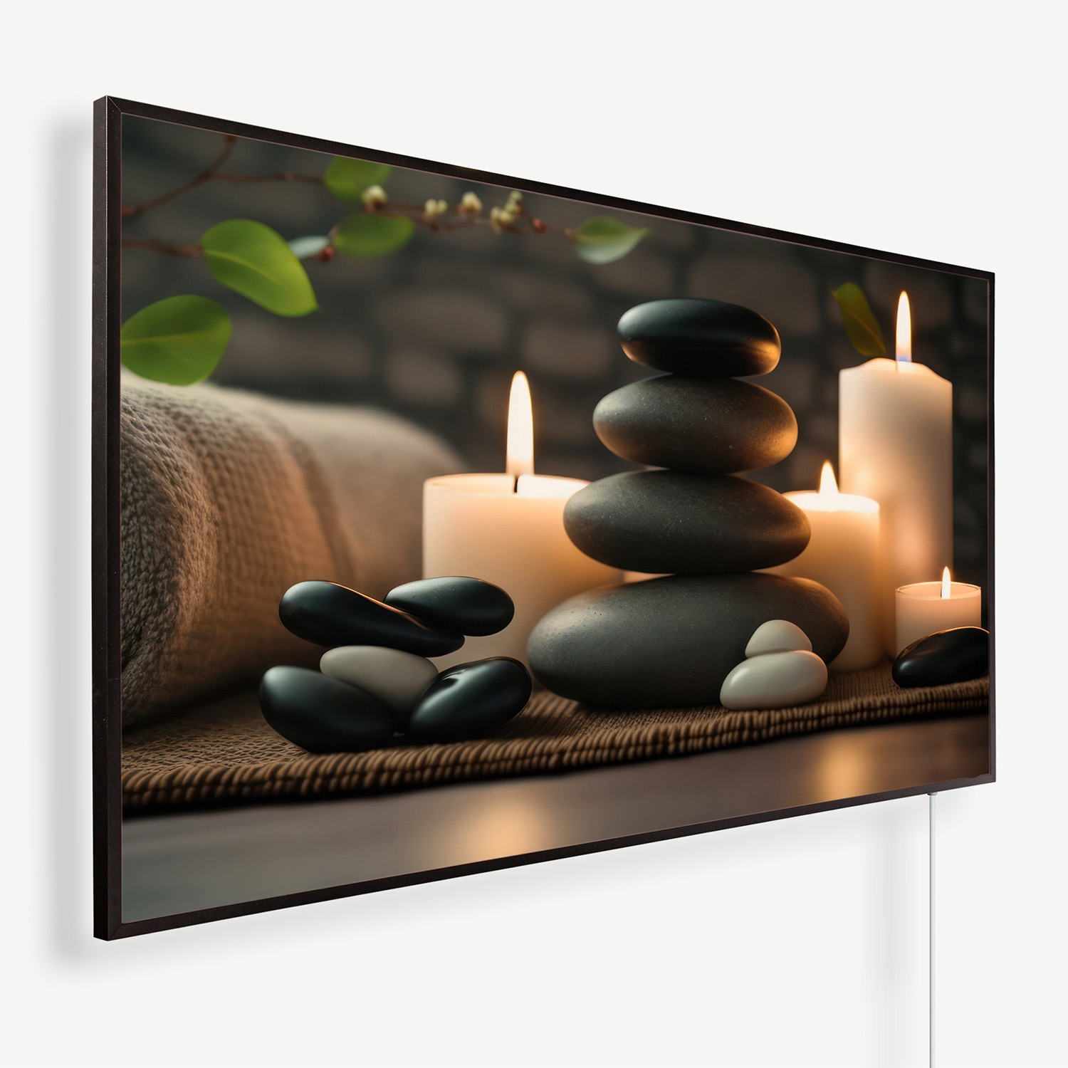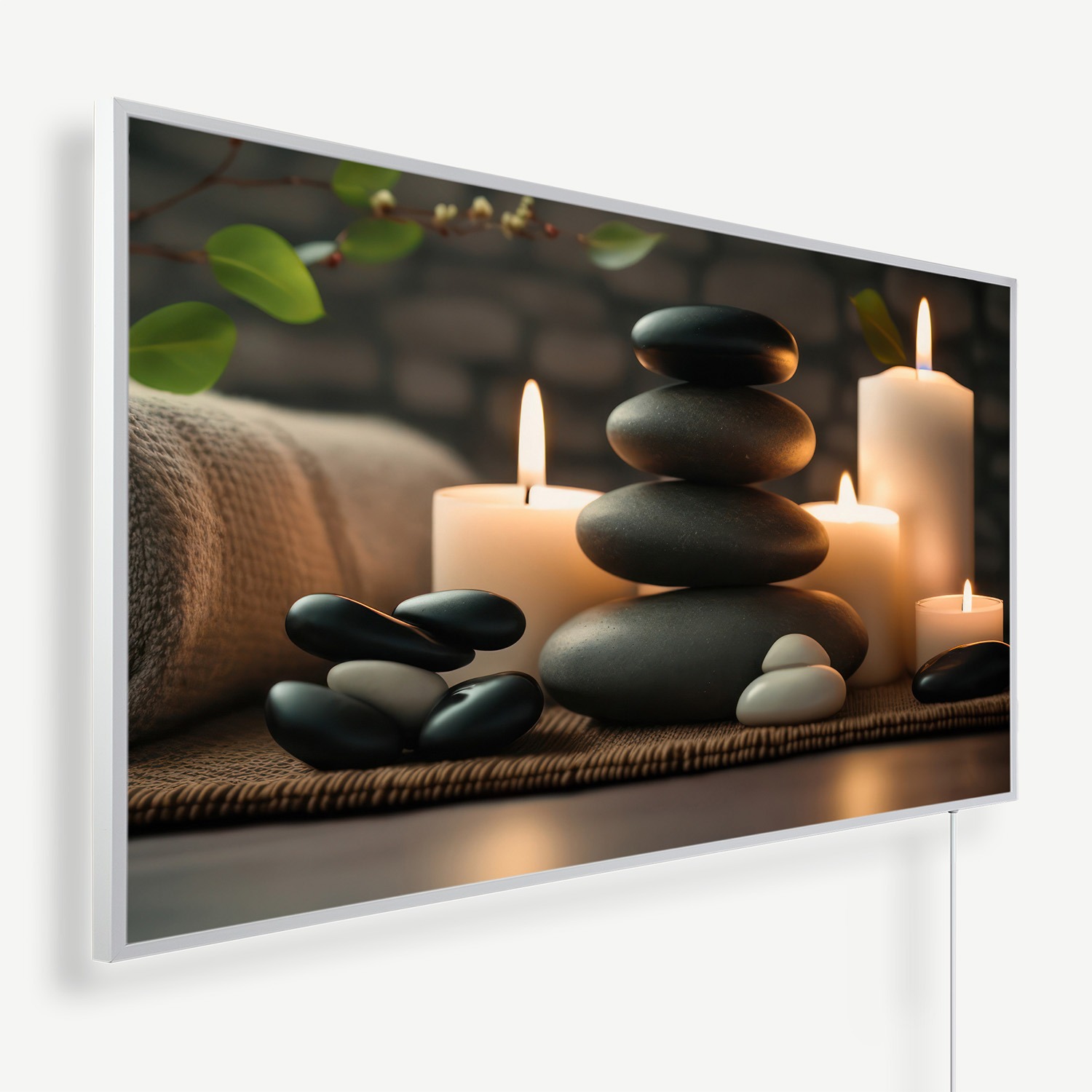 Kaarsen bloemen handdoek en stenen | Witte of zwarte lijst | 450 Watt – 1200 Watt
