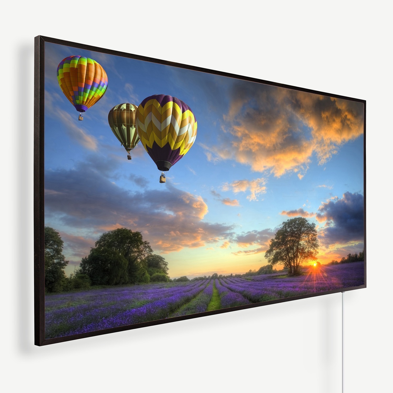 Luchtballonnen boven lavendelveld | Witte of zwarte lijst | 450 Watt – 1200 Watt