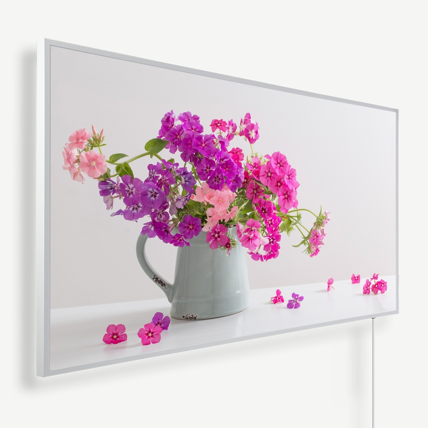 Mooie vlambloemen in kruik | Witte of zwarte lijst | 450 Watt – 1200 Watt