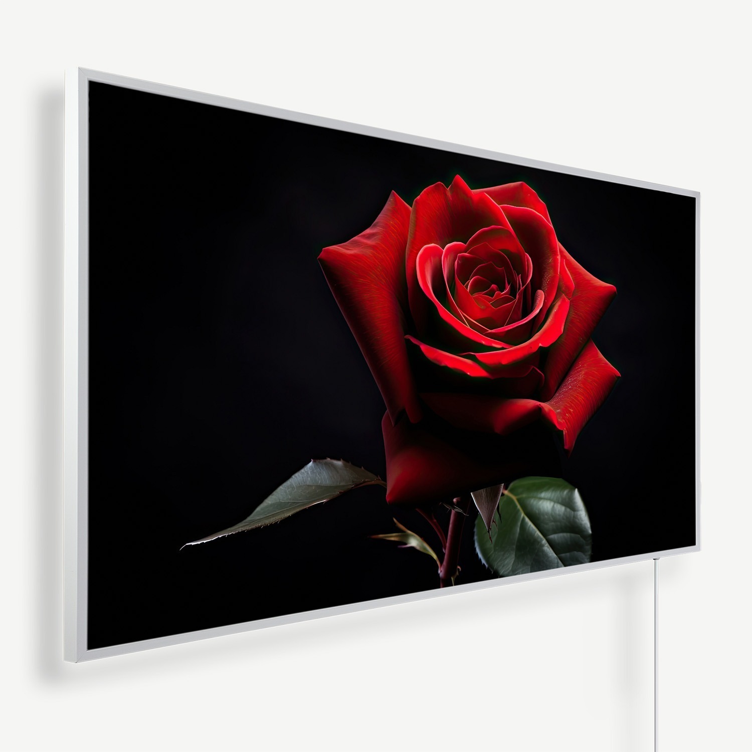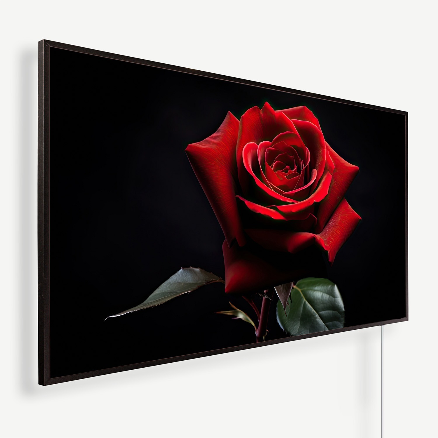 Rode roos op zwarte achtergrond | Witte of zwarte lijst | 450 Watt – 1200 Watt